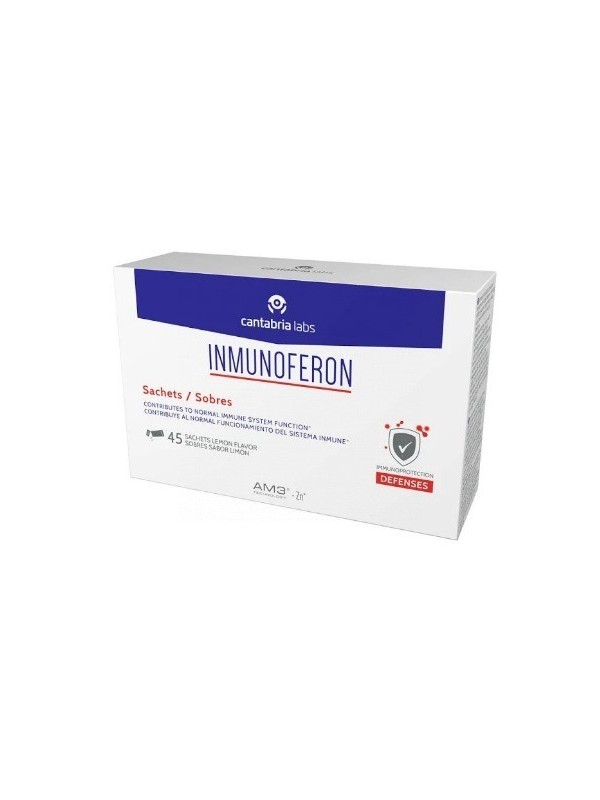 INMUNOFERON es un complemento alimenticio con una fórmula exclusiva a base de AM3® (alfa glucomanano fosforilado y proteína de soja), tecnología patentada por Cantabria Labs, y zinc, ingrediente que contribuye al normal funcionamiento del sistema inmune.