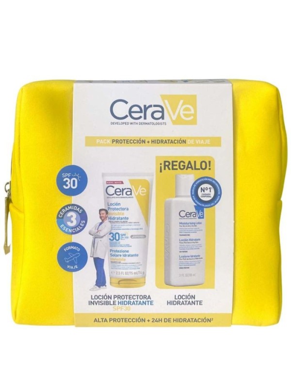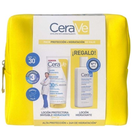 El pack cerave protección spf30 + hidratación es un completo pack de cuidado facial y corporal que combina protección solar spf 30 e hidratación intensiva en un práctico neceser de viaje. Diseñado para mantener la piel protegida frente al sol y reforzar la barrera cutánea durante todo el año. Pack solar e hidratante que incluye un fotoprotector de amplio espectro y una loción hidratante para piel seca a muy seca. Ideal para rutinas diarias de cuidado de la piel, viajes o escapadas.