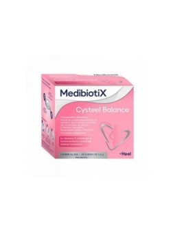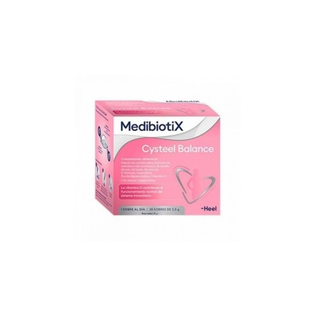 Medibiotix cysteel balance es un producto especialmente formulado para favorecer el normal funcionamiento del sistema urinario. Este simbiótico combina extracto de arándano rojo americano, semilla de uva, brezo, uva ursi, d-manosa, quercetina y vitamina d, creando una poderosa combinación de ingredientes beneficiosos para el organismo. Un simbiótico es una mezcla que incluye tanto probióticos, que son bacterias que aportan beneficios para el organismo, como prebióticos, que son alimentos que promueven el crecimiento de estas bacterias beneficiosas en el intestino. Esta combinación sinérgica asegura una acción más completa y eficaz en el sistema urinario y el equilibrio de las microbiotas intestinal y vaginal. Beneficios: contribuye a mantener una respuesta inmune óptima, lo que favorece la defensa del organismo frente a posibles amenazas. Equilibra las microbiotas tanto a nivel intestinal como vaginal, lo que preserva la salud de ambos sistemas y mejora la función inmunológica local. Contiene extracto seco de arándano rojo americano, extracto seco de uva y d-manosa, todos ellos componentes que contribuyen al bienestar del aparato urinario. Incorpora extracto seco de plantas como el brezo o la uva ursi, reconocidas por sus propiedades diuréticas, lo que favorece la eliminación de líquidos y toxinas. Contribuye al mantenimiento de la salud vaginal y de las