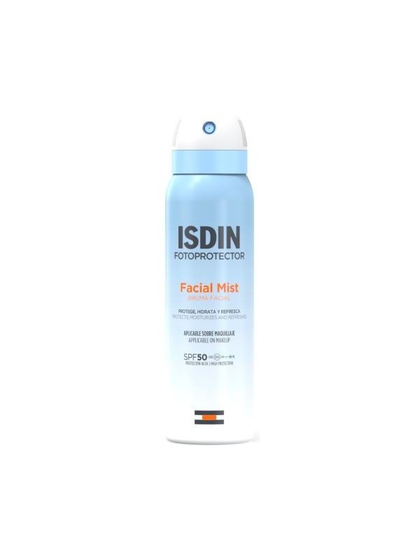 Facial mist fotoprotector spf 50, 100 ml de isdin. Protector solar facial en formato de bruma facial que ofrece una alta protección contra los rayos uva y uvb. Su fórmula ligera y de rápida absorción garantiza una protección efectiva y cómoda para todo tipo de pieles. Este producto contiene filtros solares que protegen la piel de los daños causados por la exposición al sol. Además, está enriquecido con ingredientes hidratantes que mantienen la piel suave y nutrida durante todo el día.