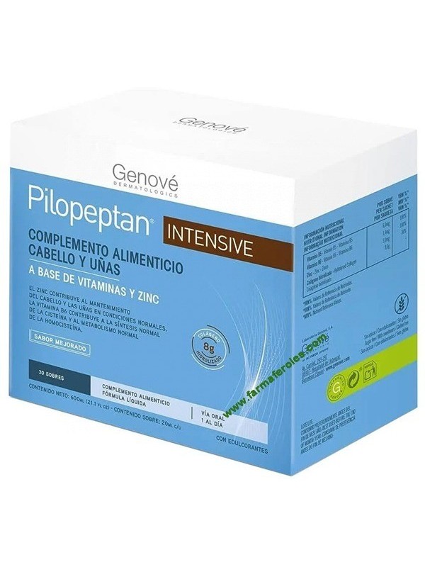 Pilopeptan intensive es un complemento alimenticio en sobres diseñado para mejorar la salud y apariencia del cabello y las uñas. Su fórmula única contiene ingredientes que nutren desde el interior, fortaleciendo el cabello y las uñas desde la raíz. Beneficios los beneficios de pilopeptan intensive son múltiples. Ayuda a fortalecer el cabello, reducir la caída, estimular el crecimiento y mejorar la apariencia de las uñas. Además, aporta los nutrientes necesarios para mantener un cabello y uñas sanos y radiantes.