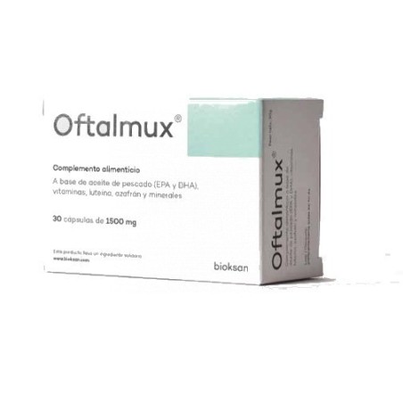 OFTALMUX® es un complemento alimenticio a base de aceite de pescado (EPA y DHA), vitaminas, luteína, azafrán y minerales. Ideado para contribuir al mantenimiento de la visión en condiciones normales.